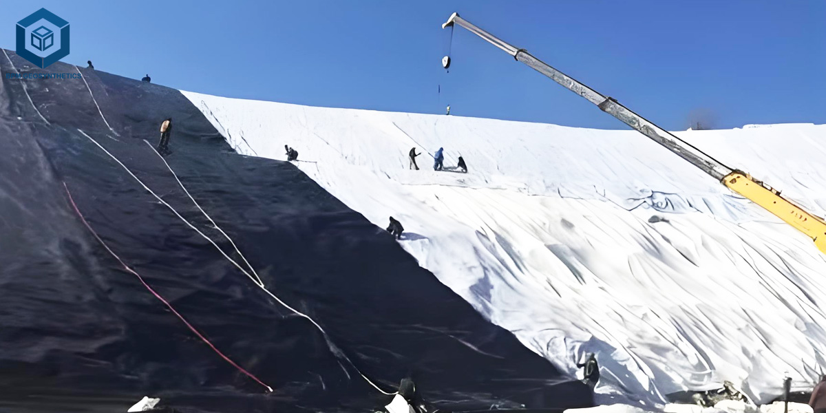 Non woven filter fabric combined with a geomembrane, it forms a composite waterproof and anti-seepage material, providing puncture prevention.